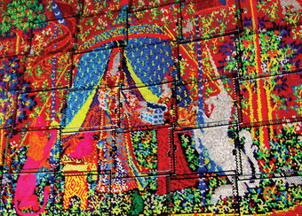 My Only Desire is a one third scale sculpture adaptation of a 15th century tapestry from The Lady and the Unicorn series made from approximately 55,000 Lite-Brite pegs affixed to 36 pegboards and glue (a two year endeavor). The original tapestry hangs along with it’s five counterparts at le Musee de Cluny in Paris which are popularly regarded as representing the five basic senses along with the sixth sense of love. My Only Desire will be installed in the gallery entrance for viewing during the SubZERO Festival.On view in galleryONE: Cloud Empire by Dimitri Drjuchin