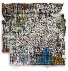 Marshall has cut up and reworked parts of a 30 foot self portrait on recycled cardboard. It was first exhibited on the streets of Bristol with the title: “We need to transfer you home” which withstood torrential wind and rain leaving it in a demoralized state. The reworked paintings in this exhibition focuses on a personal trauma from nature’s wish to be treated, revised and reborn; a parallel for Marshall of once being sectioned in a mental facility during his formative years as a young graffiti artist.