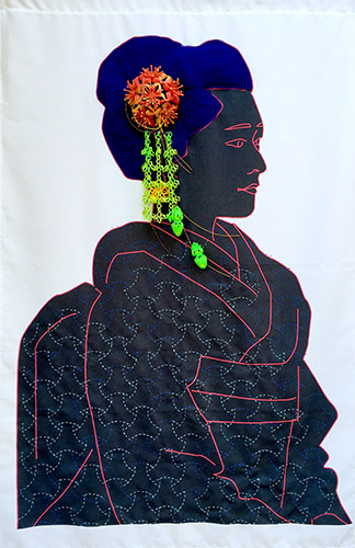 The collection is knit together by themes alluding to Japanese textiles and decorative arts, but upon closer look, are blended narratives of micro and macro explorations. Discoveries in both microbiology and planetary science are reshaping our sense of identity. Only recently have we learned that we each are unique human biome that hosts bacterial cells that outnumber our human cells by ten to one. There is water on our neighboring planet Mars and perhaps microscopic life, as well. How might we creatively re-imagine ourselves as we grow in our understanding of ourselves in context of new scientific findings? How can we look to these discoveries to frame our commonality in new ways?
